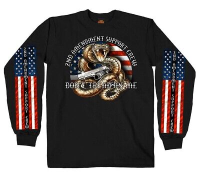 This front printed men's long sleeve shirt in the color Black features Hot Leathers® original "2nd Amendment Rattler" design. This T-Shirt proudly states "DON'T TREAD ON ME"
